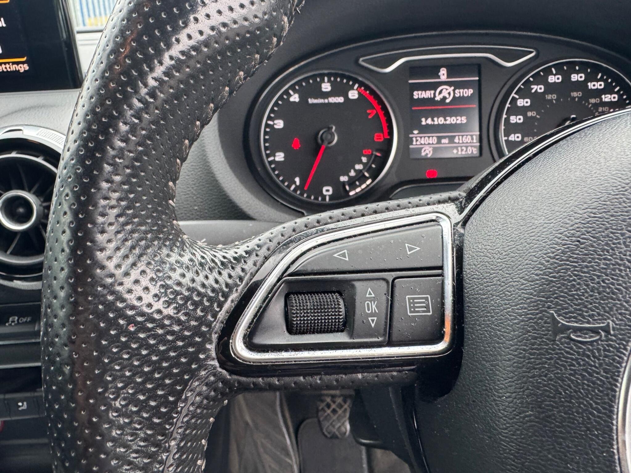 This Audi A3 TFSI S line from 2013 boasts a clear vehicle history and has been owned by just one person, offering peace of mind for its next owner. This stylish hatchback features a 1.4 litre petrol engine and comes with the desirable S line trim, enhancing its sporty appeal. You'll find a multi-function, leather trimmed steering wheel for convenient control, a high gloss black radiator grille for a sharp look, and useful features like TP Memo to automatically save traffic news and voice control for telephone functions. A cigarette lighter is also included.