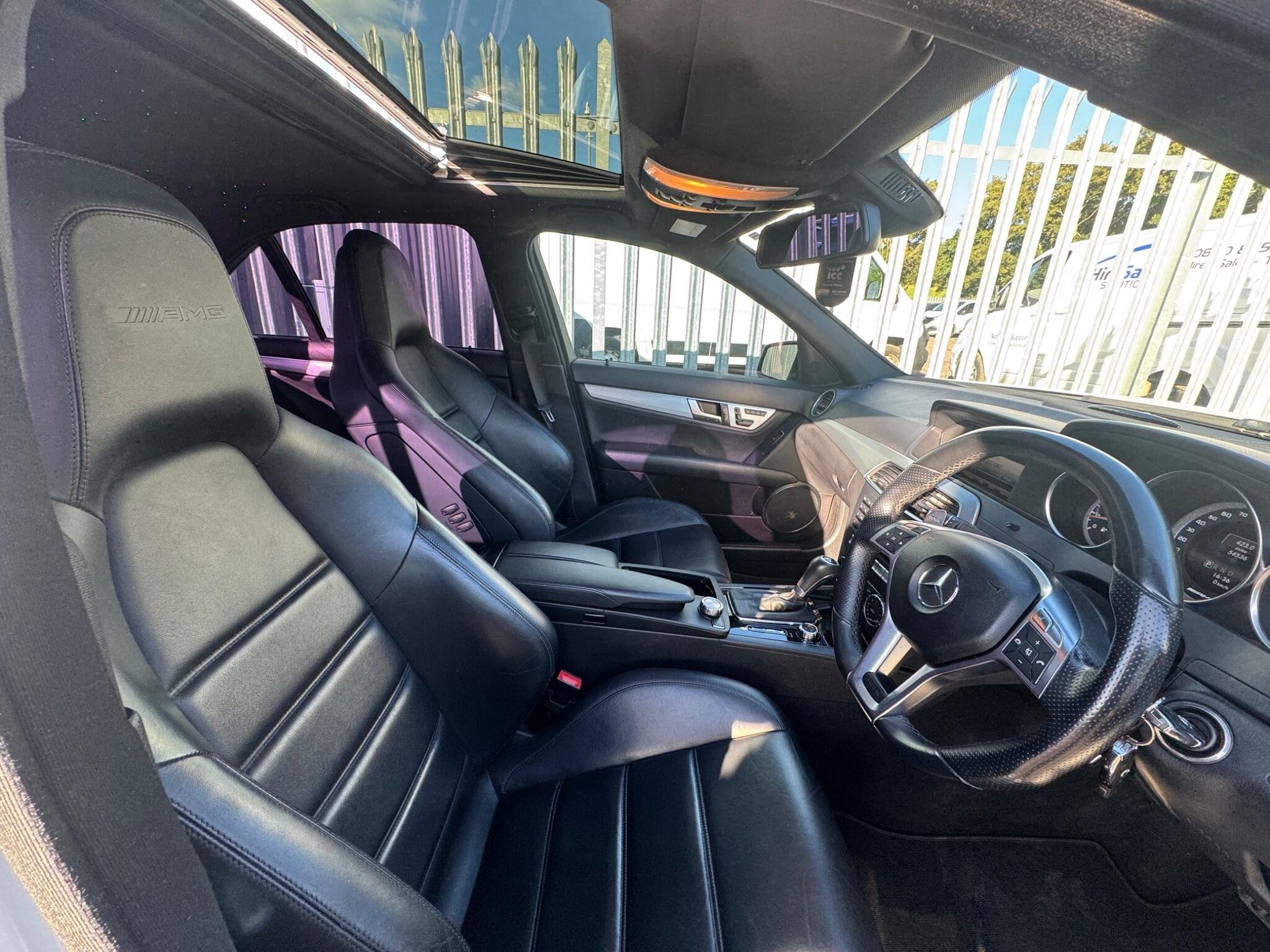 This 2013 Mercedes-Benz C Class C63 V8 AMG boasts exceptionally low mileage for its age, having covered just 54,000 miles. This performance variant, finished in AMG trim, is powered by a formidable 6.3 litre petrol engine. For added convenience and safety, it features Parktronic with audible and visual parking aids for both the front and rear, along with front electrically adjustable seats that include a memory function. Stay connected on the go with the integrated Bluetooth interface for hands-free telephony, and experience superior illumination thanks to the Bi Xenon headlights.